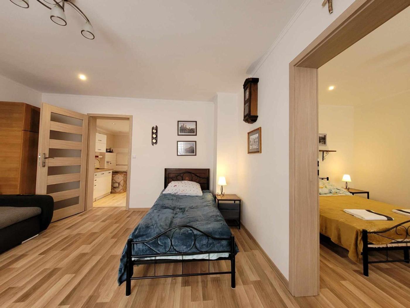 Apartament z 2 sypialniami. Featuring a private entrance, this apartment comprises 1 living room, 2 separate bedrooms and 1 bathroom with a shower and a hairdryer. Meals can be prepared in the kitchen, which comes with a stovetop, a refrigerator, kitchenware and an oven. This apartment features a washing machine, a wardrobe, a flat-screen TV and a terrace. The unit offers 4 beds. Apartament - 5 osobowy. Powierzchnia pokoju ok.: 32 mkw.