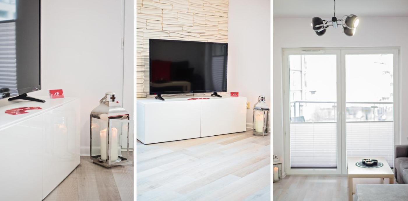Apartament z balkonem. Featuring a private entrance, this air-conditioned apartment consists of 1 living room, 1 separate bedroom and 1 bathroom with a walk-in shower and a hairdryer. Meals can be prepared in the well-fitted kitchenette, which is equipped with a stovetop, a refrigerator, a dishwasher and kitchenware. Boasting a balcony with city views, this apartment also provides a washing machine and a flat-screen TV with cable channels. The unit offers 2 beds. Apartament - 4 osobowy. Powierzchnia pokoju ok.: 45 mkw. ;