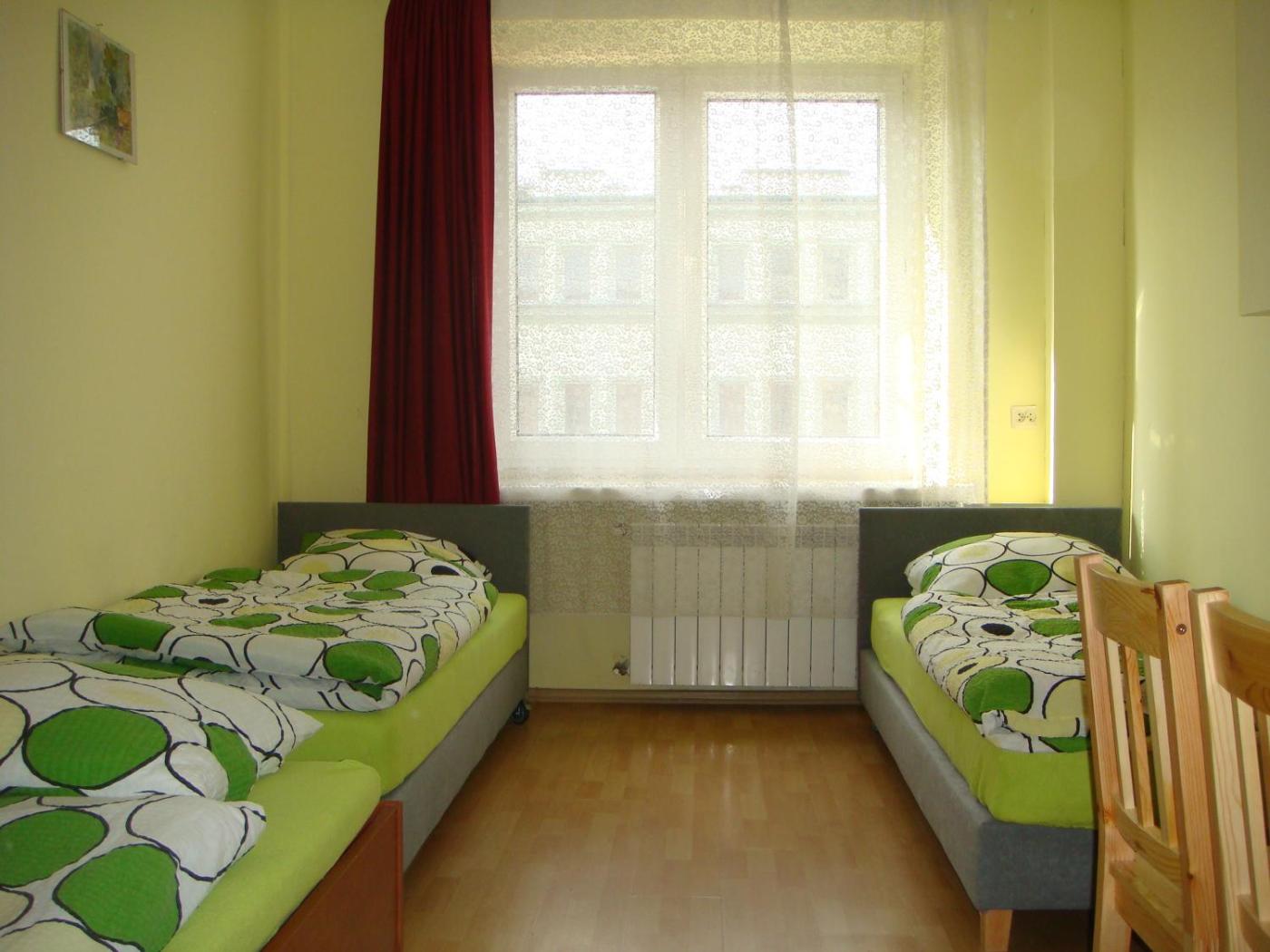 Pokój Czteroosobowy ze wspólną łazienką. The quadruple room offers parquet floors, heating and city views. The unit offers 4 beds. Pokój Czteroosobowy - 4 osobowy. Powierzchnia pokoju ok.: 15 mkw. ;