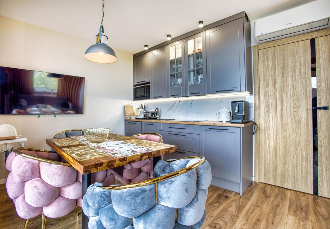 Apartament typu Deluxe. The hot tub is a top feature of this apartment. This apartment comes with 1 living room, 1 separate bedroom and 1 bathroom with a shower and free toiletries. In the well-equipped kitchen, guests will find a stovetop, a refrigerator, a dishwasher and kitchenware. The air-conditioned apartment features a flat-screen TV, soundproof walls, a tea and coffee maker, a seating area as well as lake views. The unit has 2 beds. Apartament - 4 osobowy. Powierzchnia pokoju ok.: 38 mkw.