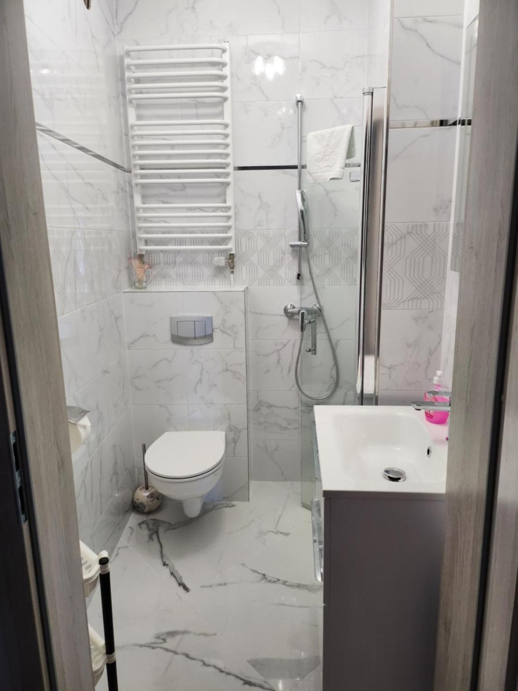 Apartament z 2 sypialniami. This spacious apartment consists of 1 living room, 2 separate bedrooms and 2 bathrooms with a shower. In the kitchen, guests will find a stovetop, a refrigerator, a dishwasher and kitchenware. The apartment features parquet floors, a seating area with a flat-screen TV, a washing machine, soundproof walls as well as city views. The unit offers 5 beds. Apartament - 10 osobowy. Powierzchnia pokoju ok.: 130 mkw.